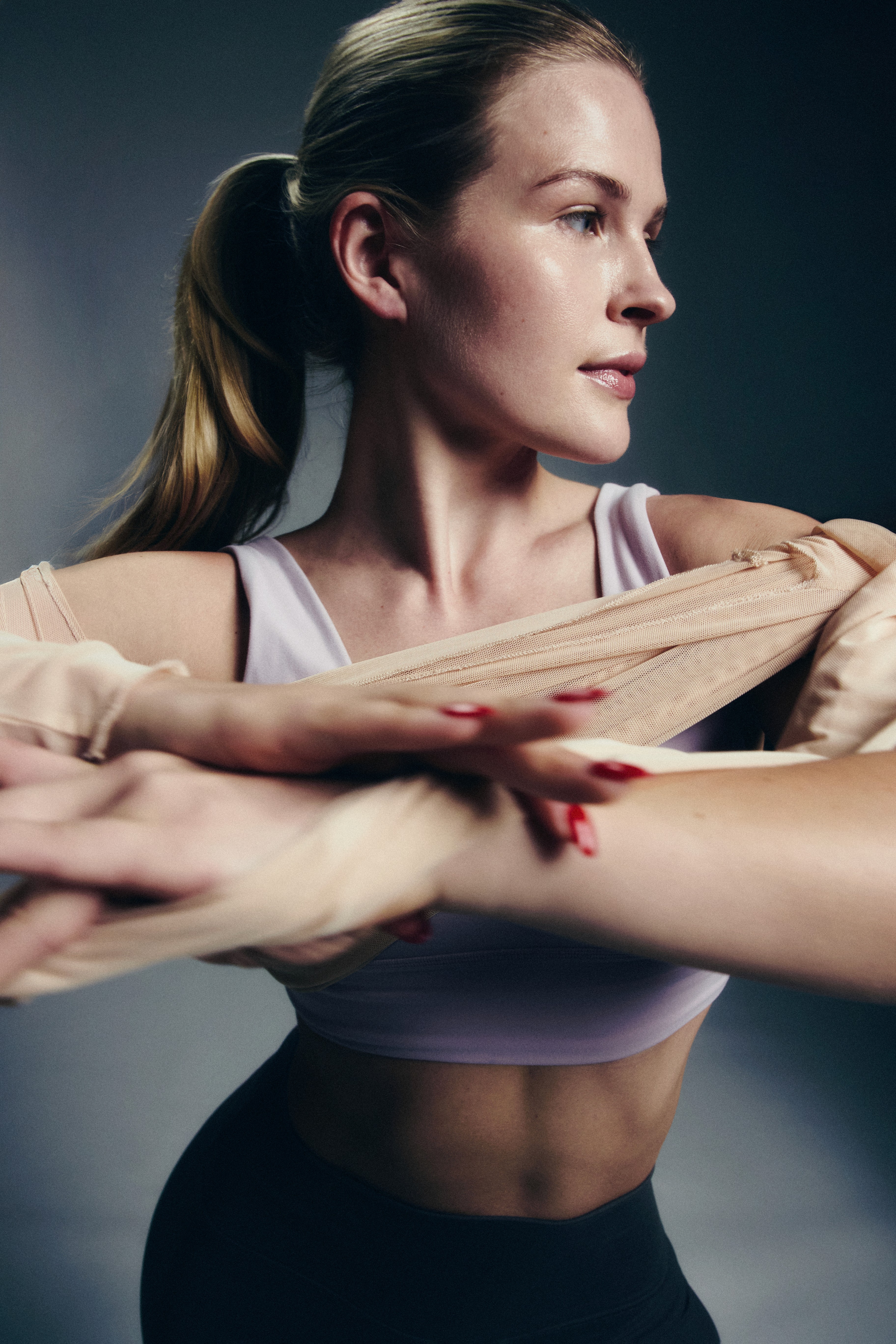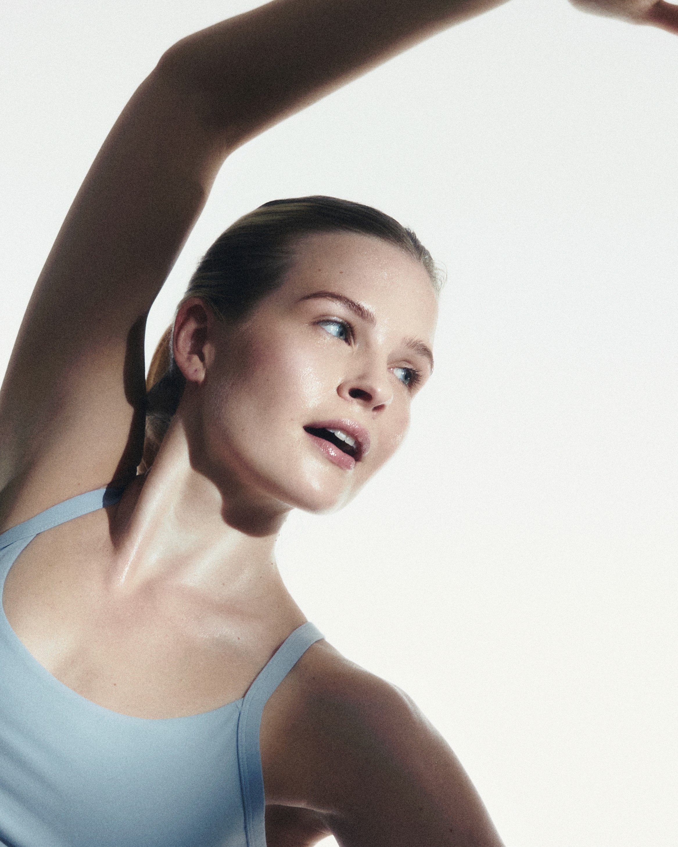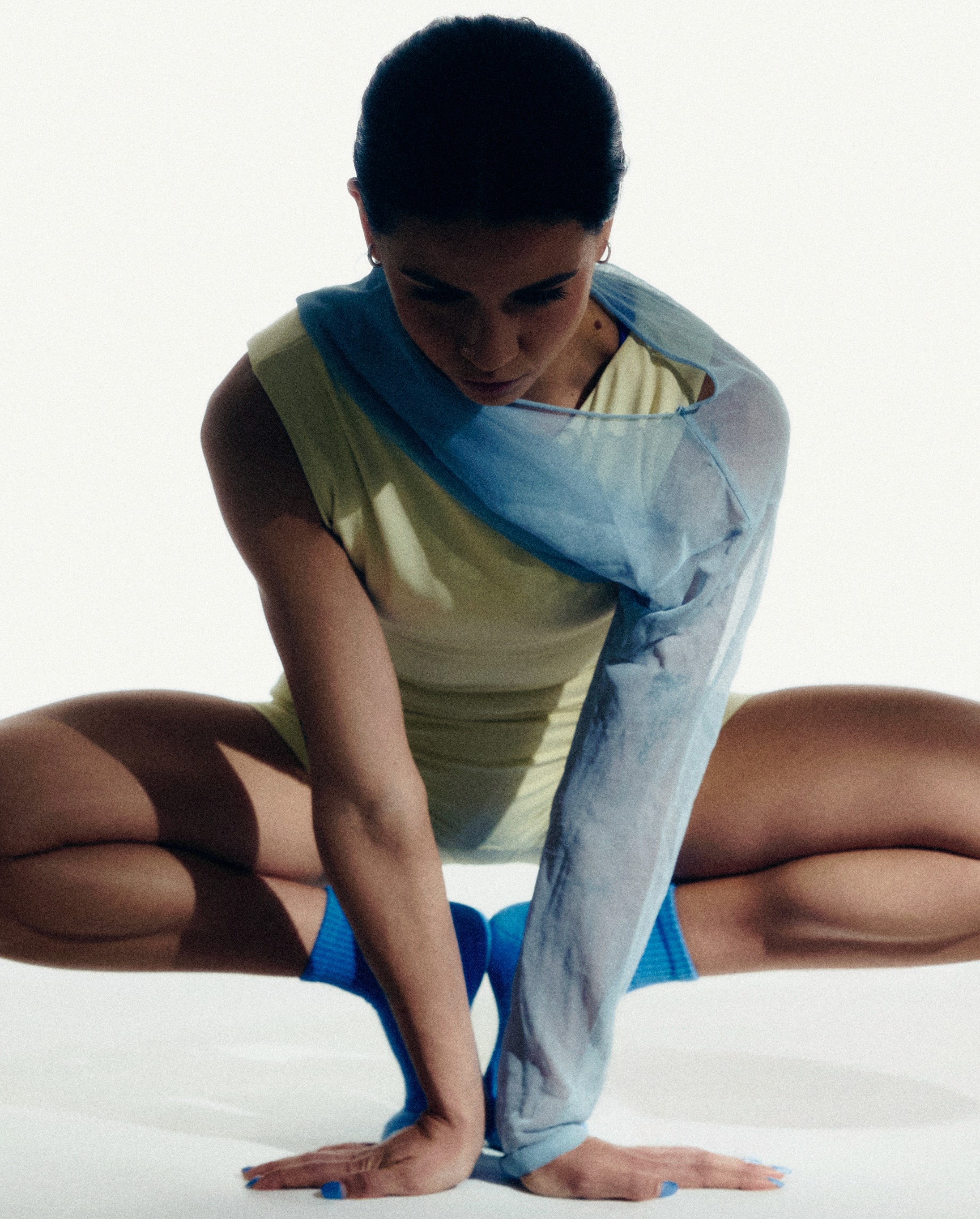 A clean, aesthetic shoot highlighting the body in motion with focus on shape, muscle, and shadow. Outfits in KORE tones (black, grey, shades of blue) underline strength and calm. Sculptural, minimal, and powerful. An abstract ode to the human body. photo: @annikayanura